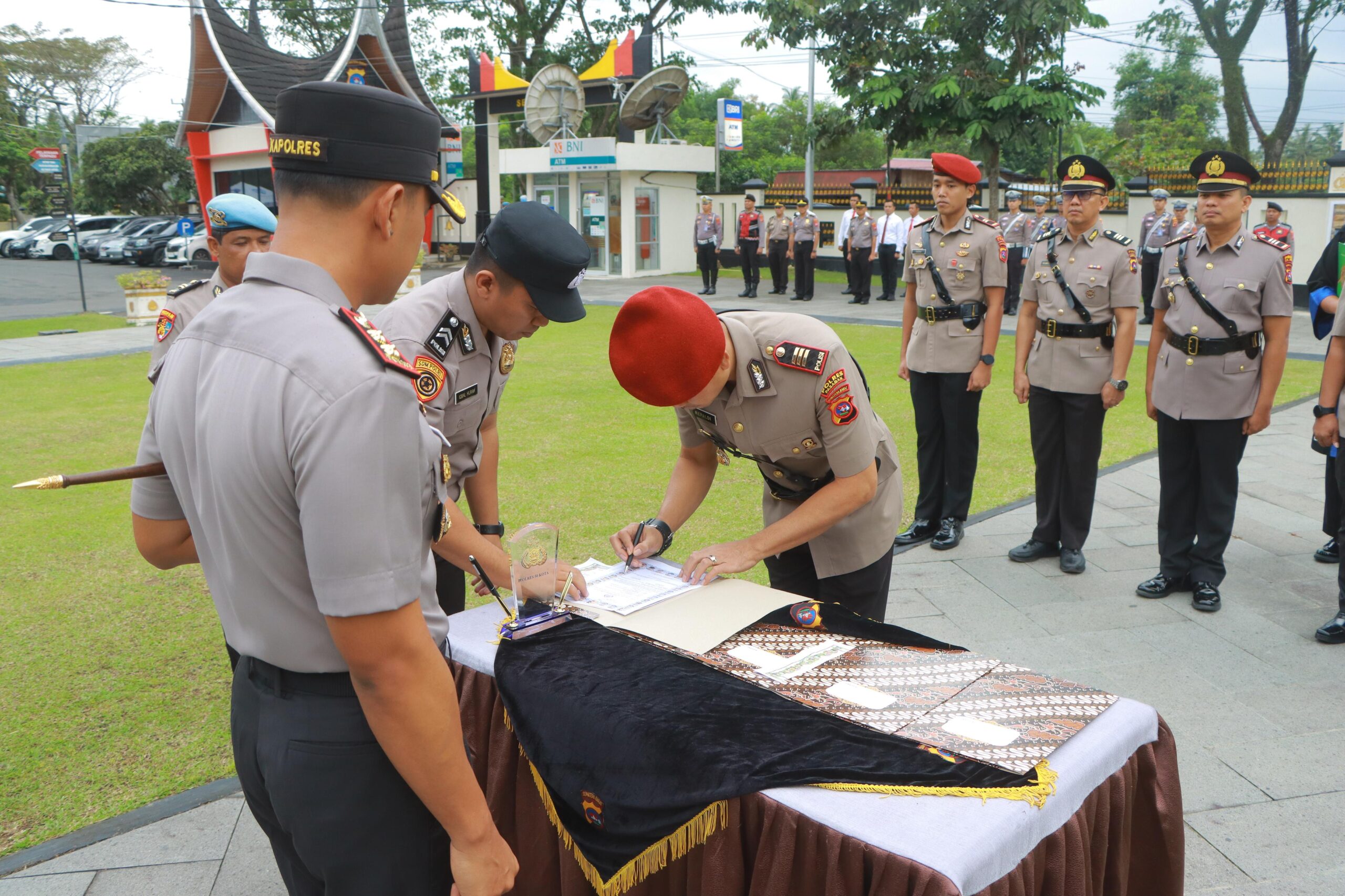 Rangkaian kegiatan meliputi pembacaan surat keputusan Kapolda Sumbar, pengambilan sumpah jabatan, penandatanganan berita acara serah terima jabatan dan fakta integritas, hingga pembacaan doa.