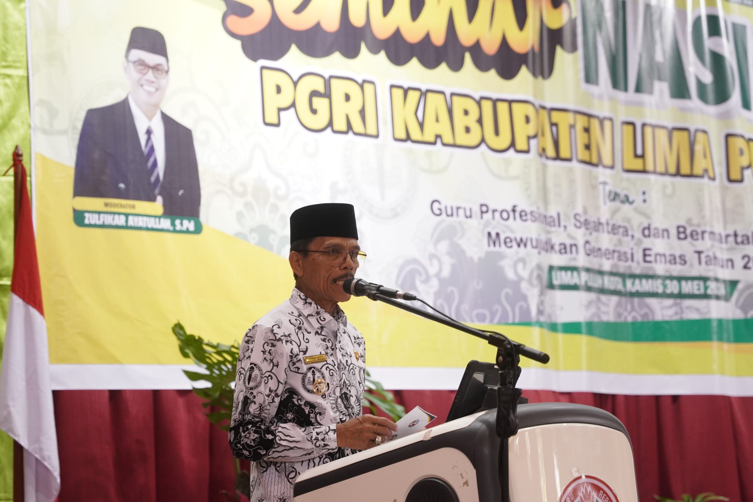 Guru menurut Safarudin adalah bagian penting yang harus terus diperjuangkan untuk memajukan suatu daerah, sehingga guru perhatian khusus dari tahun ke tahun. Hal tersebut diungkapkan Bupati Limapuluh Kota, Safarudin usai membuka Seminar Nasional yang digelar PGRI Kabupaten Limapuluh Kota, Kamis pagi 30 Mei 2024 di Aula Politeknik Pertanian Negeri Payakumbuh Tanjung Pati Kecamatan Harau Kabupaten Limapuluh Kota.