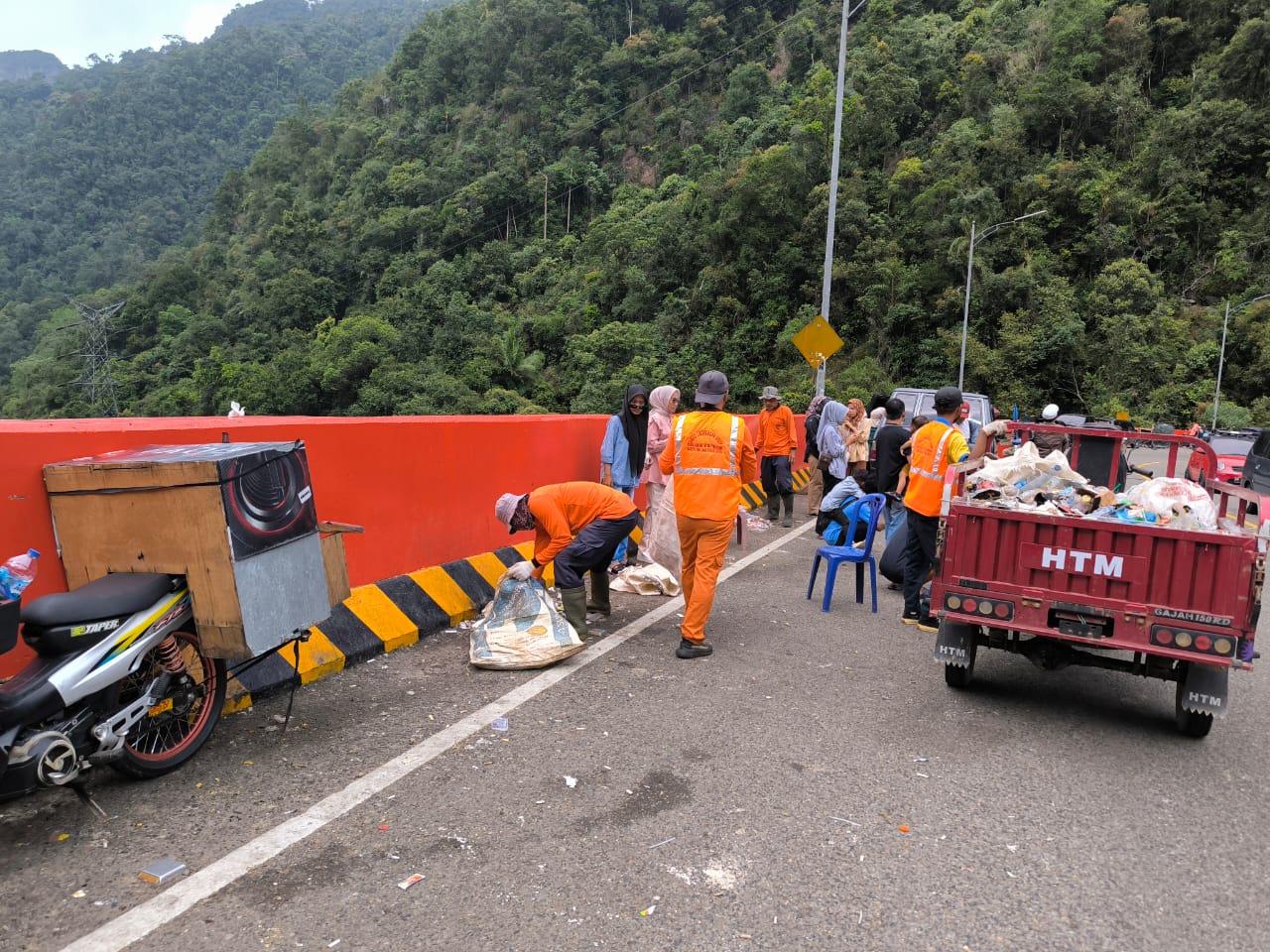 Untuk mengantisipasi terjadinya penumpukan sampah, khususnya di kawasan di Fly Over Kelok Sembilan Dinas Lingkungan Hidup, Perumahan Rakyat, dan Permukiman (DLHPP) Kabupaten Limapuluh Kota menurunkan puluhan petugas kebersihan untuk membersihkan sampah-sampah yang berserakan di lokasi tersebut.