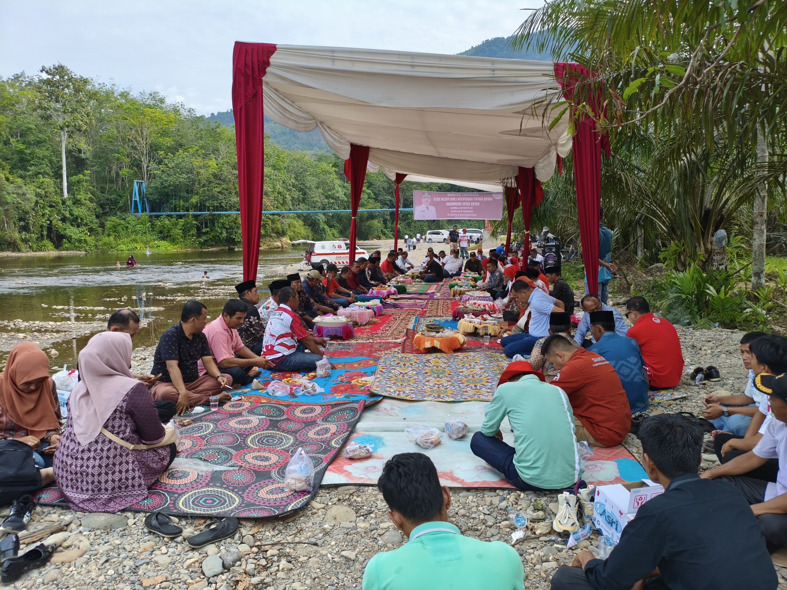 Airnya jernih, dingin, dan menyejukkan, berpadu dengan suasana hutan perbukitan yang asri. Sungai itu baru saja dipoles melalui program normalisasi Balai Wilayah Sungai. Di tepian air yang beriak tenang, kami duduk bersama masyarakat, tertawa, bercengkerama. Malam itu terasa bukan seperti rombongan pejabat dan rakyat, melainkan keluarga besar yang menyatu.