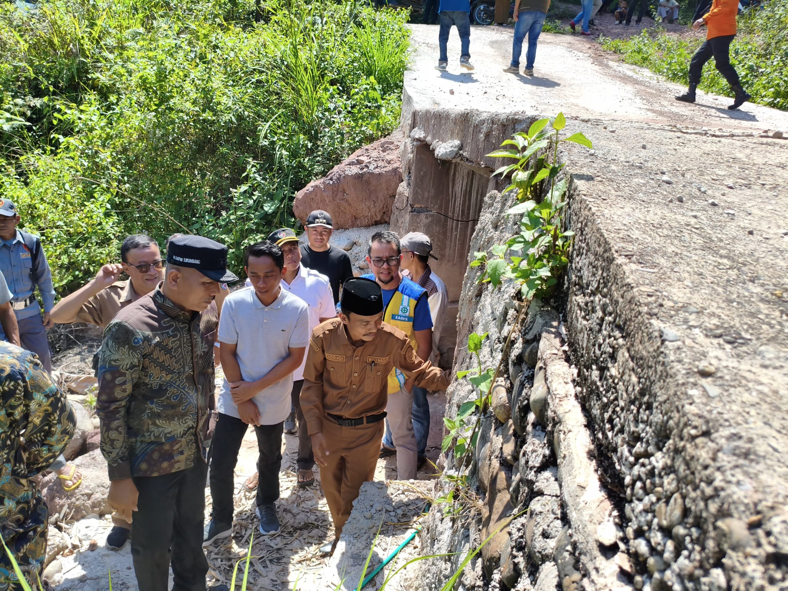 Perjalanan berlanjut. Walinagari dan perangkat setempat menyambut dengan hangat, lalu mengajak rombongan ke jorong paling ujung Galugua, titik yang benar-benar jauh dari pusat pemerintahan. Di sana, Bupati kembali berhenti, kali ini di sebuah jembatan beton yang kondisinya mulai retak.
