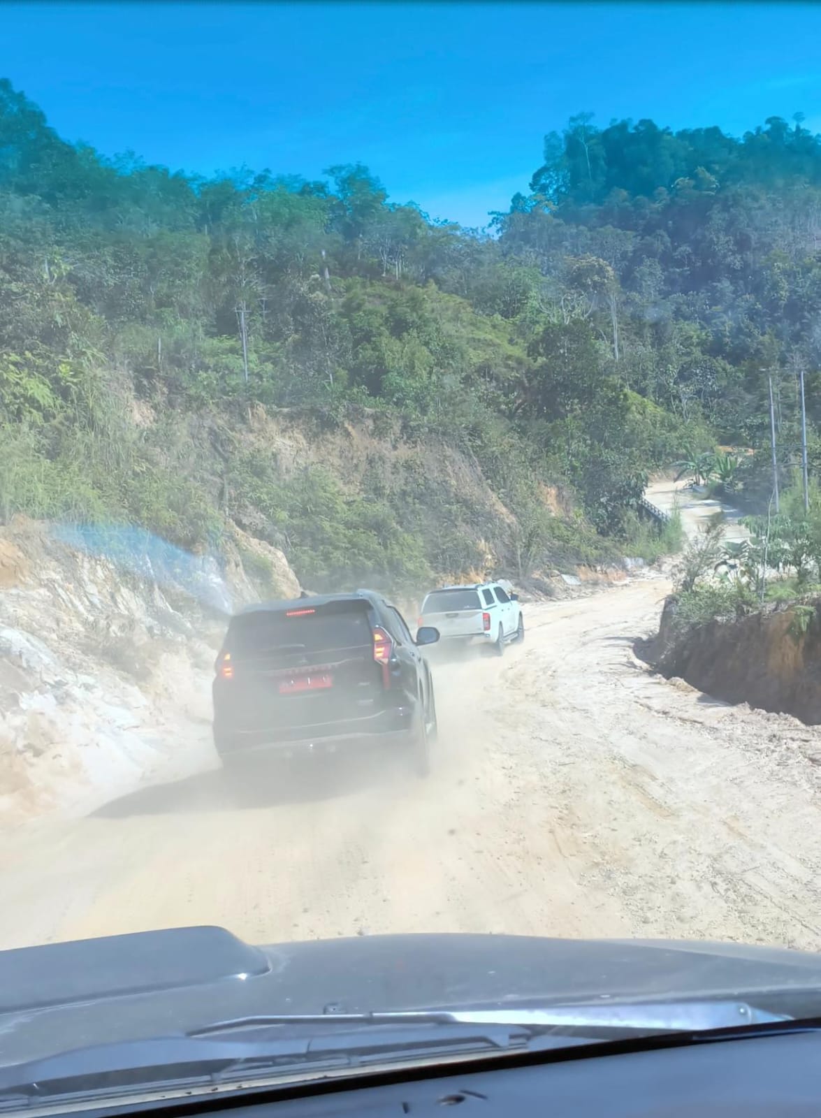 Esok pagi, perjalanan sesungguhnya dimulai. Kendaraan 4×4 berjejer, siap menembus jalan panjang menuju Galugua. Warga setempat berulang kali mewanti-wanti, “Kalau musim hujan, jangan harap bisa lewat. Jalan bisa berubah jadi lautan lumpur.” Syukurlah, musim kemarau membuat jalan masih bisa dilalui, meski berdebu pekat. Debu itu menutupi jarak pandang, hingga mobil di depan hanya samar terlihat. Sesekali kendaraan tersendat, roda berputar di tanjakan yang licin. Perjalanan ini seakan memberi gambaran nyata betapa beratnya keseharian masyarakat Galugua ketika ingin menjangkau dunia luar.