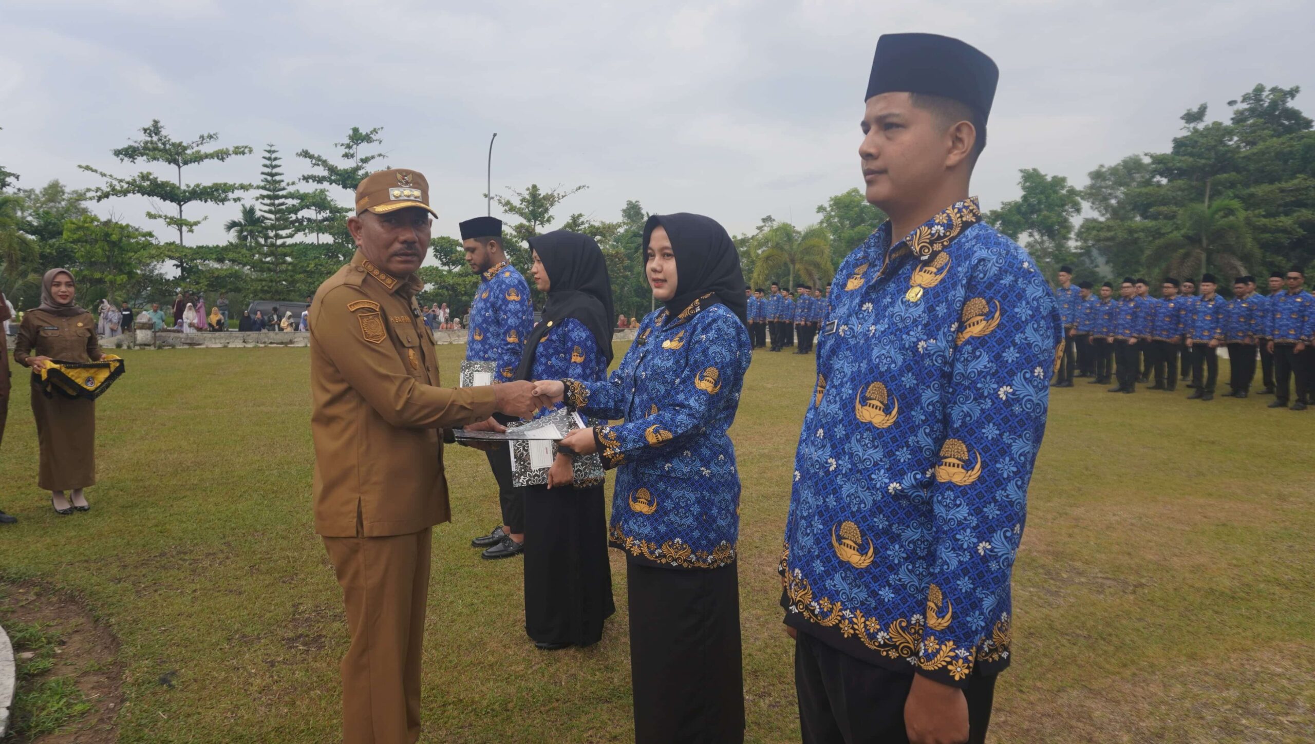 “Momen ini tentu menjadi kebahagiaan dan kebanggaan tersendiri bagi saudara-saudara semua. Dari ribuan pelamar, Andalah yang terpilih dan dipercaya oleh negara,” ujar Bupati Safni dalam sambutannya.