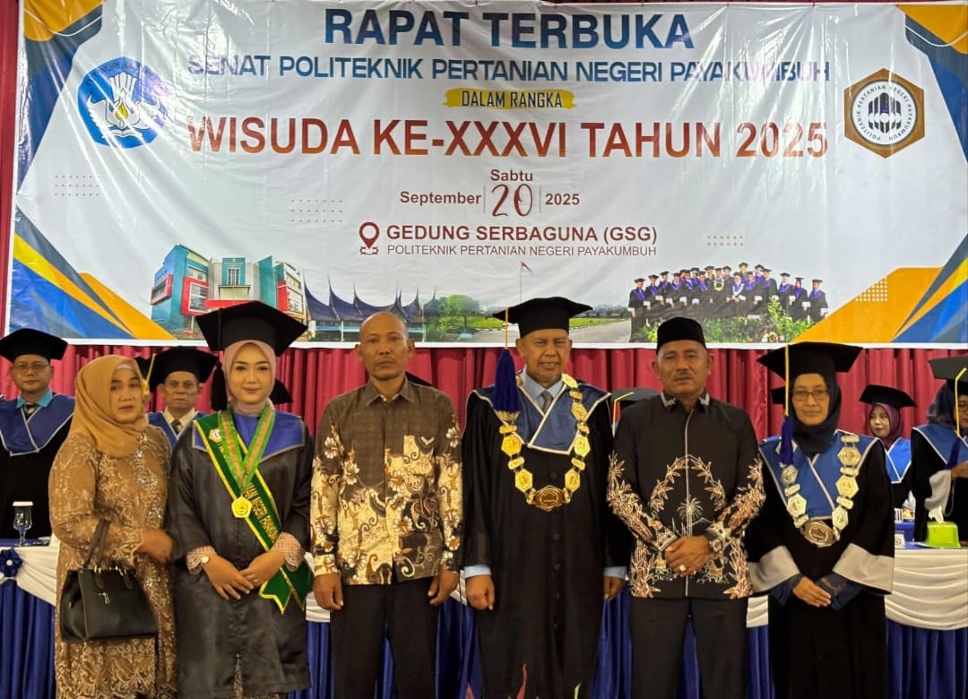 Bupati Limapuluh Kota, H. Safni Sikumbang, memberikan kejutan istimewa dalam acara Wisuda Angkatan XXXVI Politeknik Pertanian Negeri Payakumbuh yang digelar di Gedung Serbaguna kampus tersebut, Sabtu (20/9/2025).