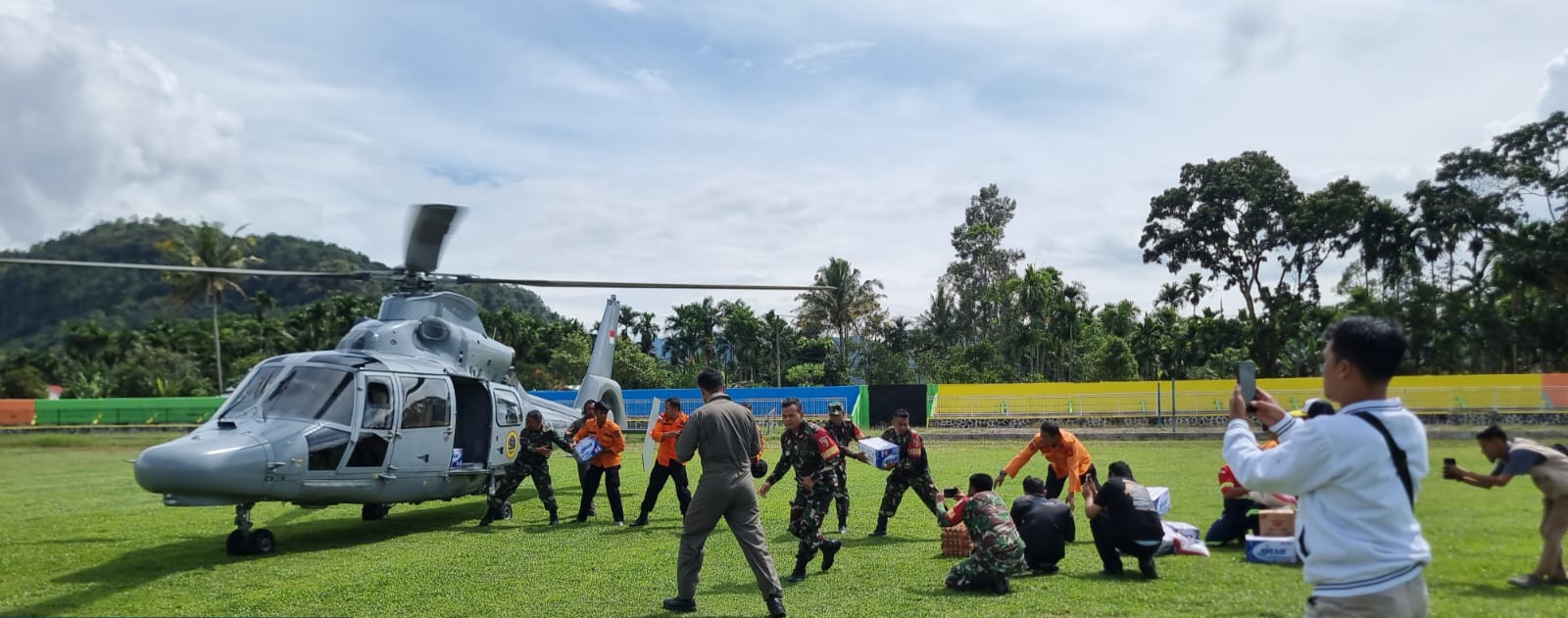 ” Iya betul, sudah mendarat tadi satu buah helikopter di Singa Harau dan kita sudah menerima bantuan. Tadi dari pimpinan rombongan menyampaikan bahwa sebetulnya kegiatannya ada cek rute. Nantinya cek rute akan jadi pertimbangan bagi pemerintah pusat atau pihak terkait untuk menentukan bantuan berikutnya,”ucap Sekda Kabupaten Limapuluh Kota, Herman Azmar kepada wartawan di GOR Singa Harau.
