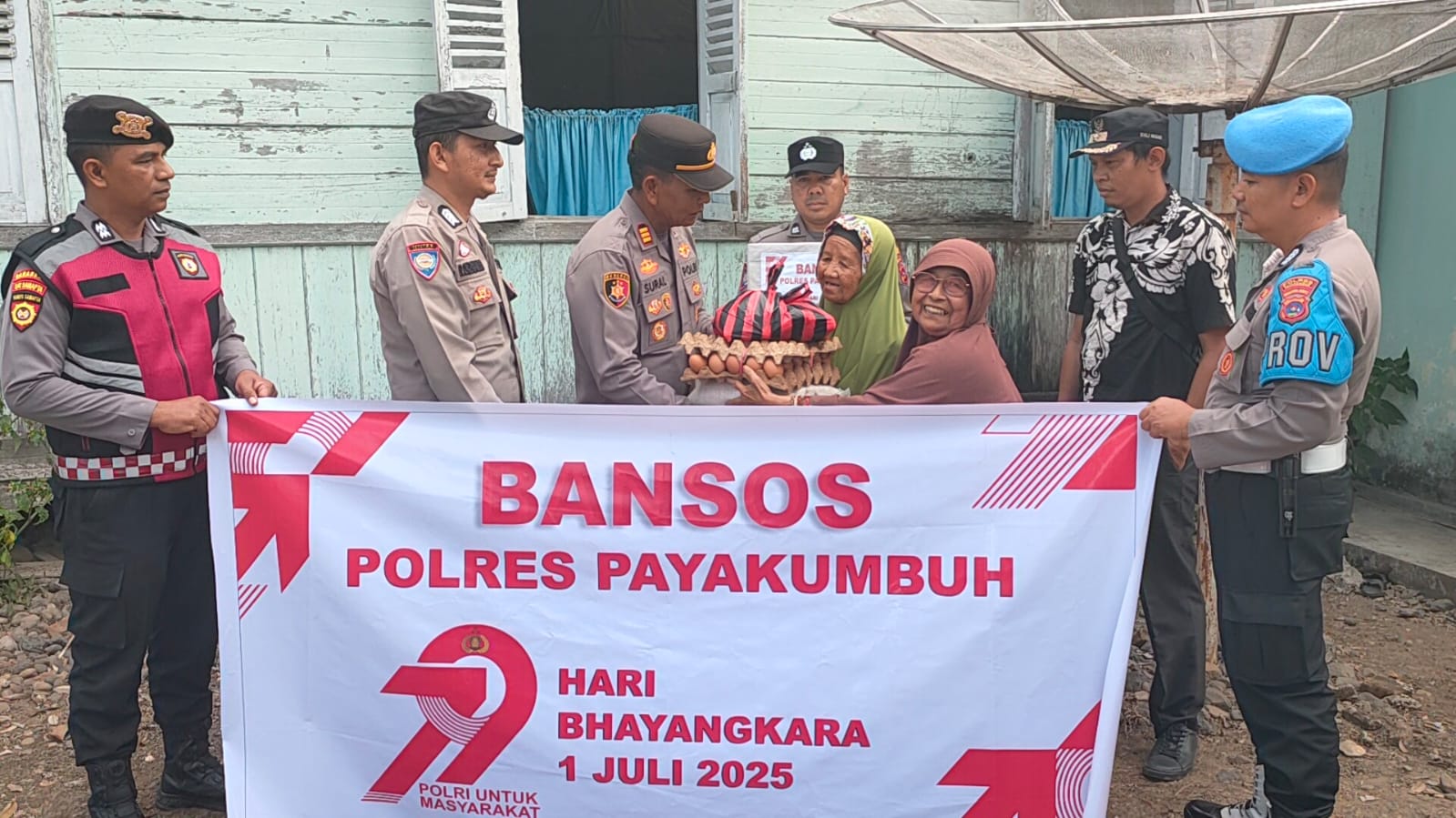 Rangkaian peringatan Hut Bhayangkara Ke-79 tahun 2025, Polsek Payakumbuh membagikan puluhan Paket Sembako kepada masyarakat di wilayah hukumnya, Paket Sembako berupa beras, Minyak goreng , telur, Gula ,kopi dan Teh itu dibagikan langsung Kapolsek Payakumbuh, AKP. Apriman Sural didampingi Camat dan sejumlah anggota Polsek langsung kerumah masyarakat di Kabupaten Limapuluh Kota.