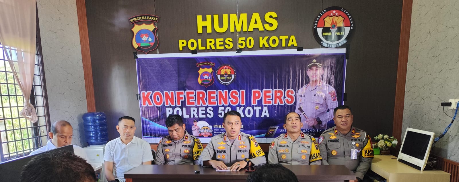 ” Iya, untuk kasus dugaan pembunuhan Buk Guru Lidia, sudah 27 saksi yang kita periksa, kita juga masih terus dalami kasus ini,”sebut Kapolres 50 Kota, AKBP. Syaiful Wachid didampingi Kasat Reskrim, AKP. Repaldi dan sejumlah PJU saat Konferensi Pers akhir tahun di Mapolres 50 Kota, Rabu 31 Desember 2025 di ruang Humas.