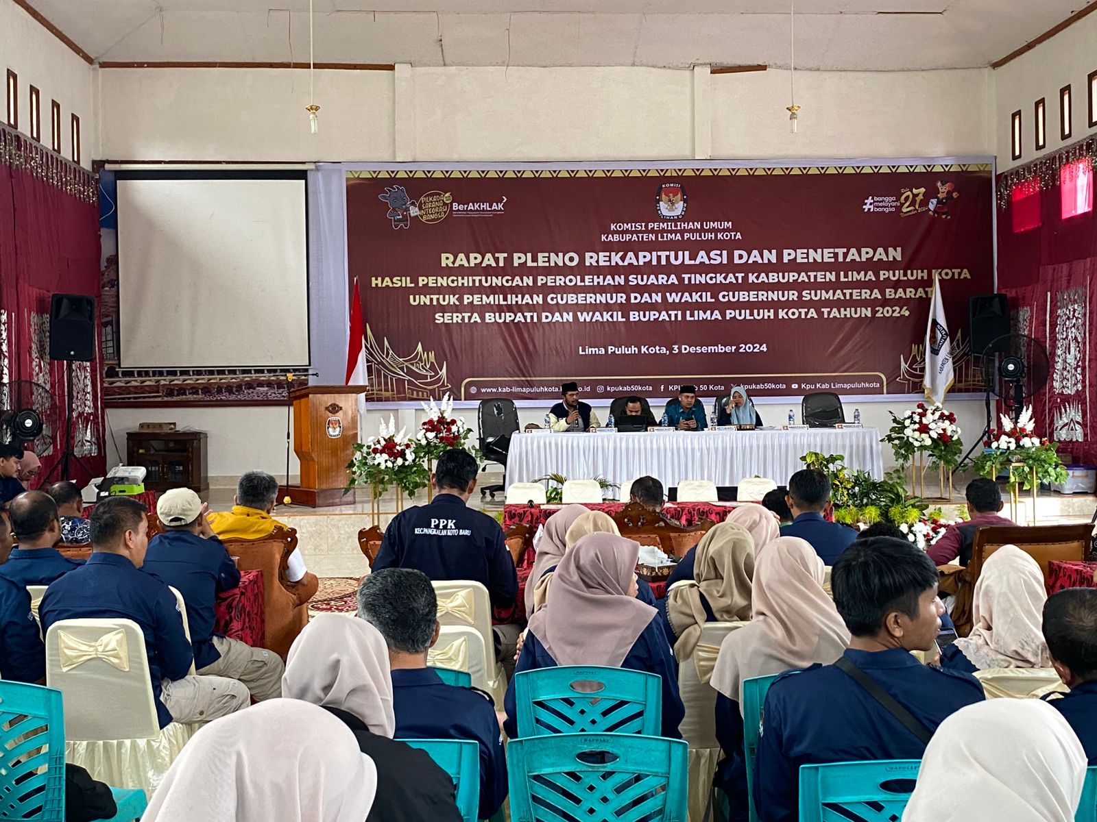 Selain dihadiri langsung Ketua KPU Kabupaten Limapuluh Kota, Okto Rizaldi juga hadir anggota KPU, BAWASLU, PPK, PANWASCAM, Saksi PASLON.