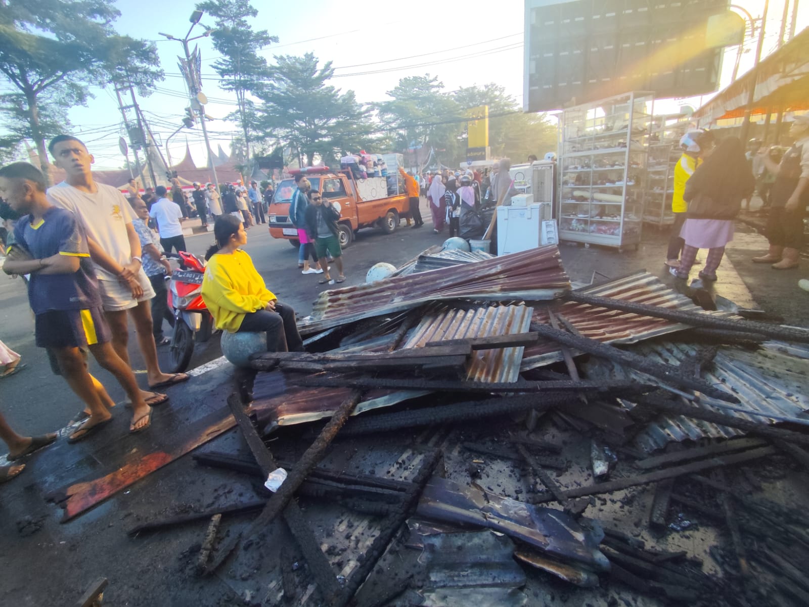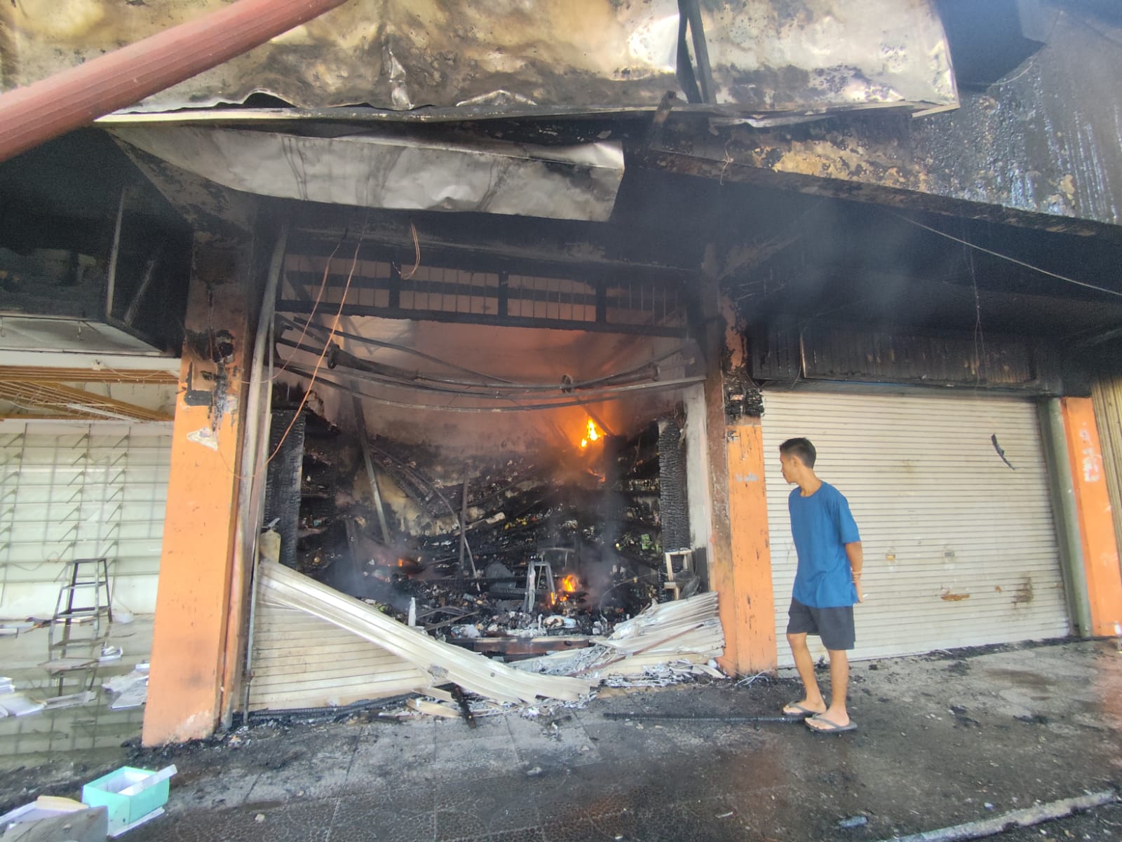 ” Untuk total kerugian sementara diperkirakan mencapai Rp. 30 M lebih, jumlah kios yang terbakar mencapai 267 toko dengan rincian di lantai 1 163 Toko dan di lantai 2 104 toko. Selain itu juga terdapat 185 kios dan 25 buah Palung patri yang ikut terbakar,”ucap Rida.