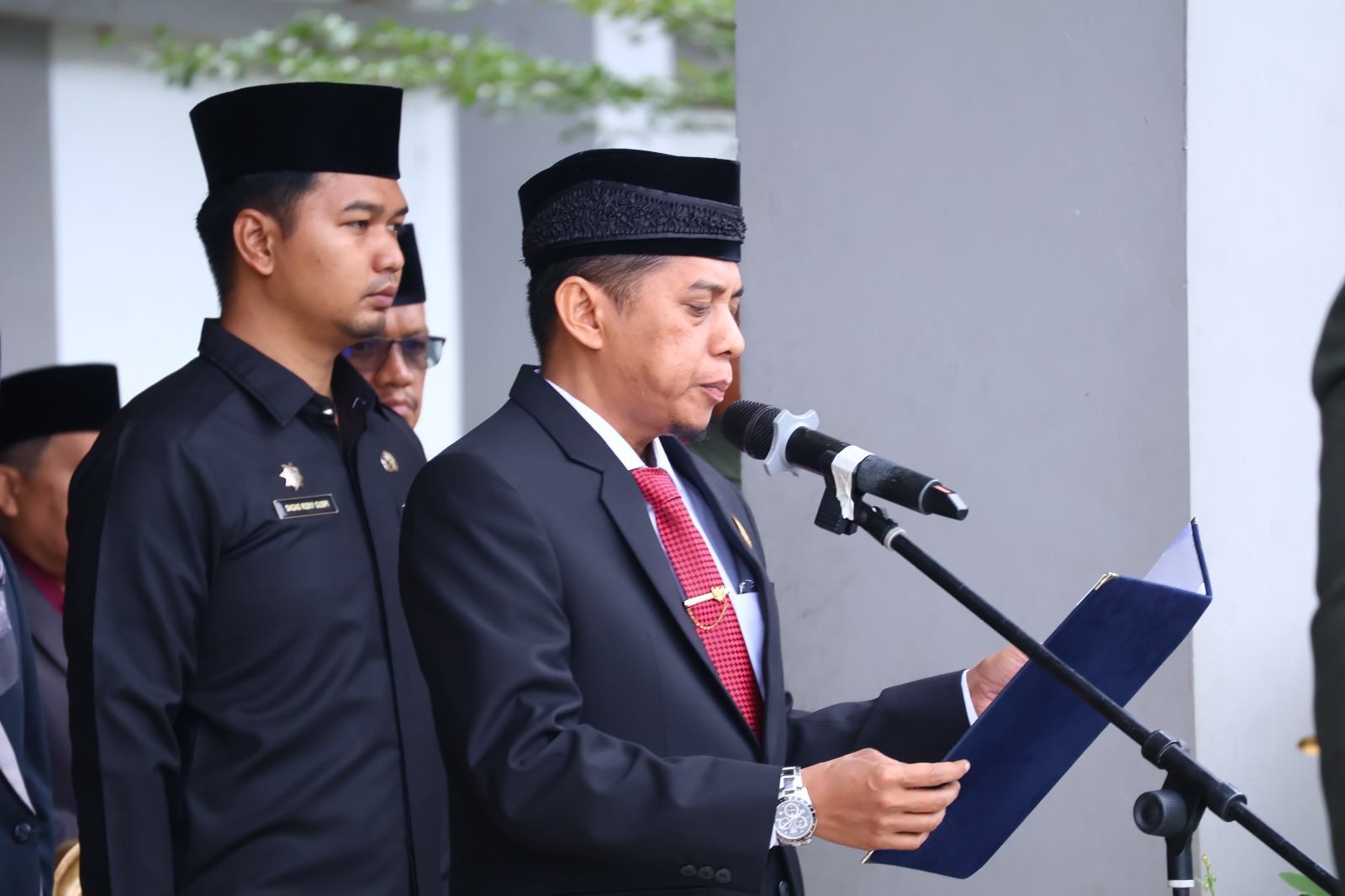 Ketua DPRD Kota Payakumbuh, Wirman Putra, membacakan Naskah Ikrar Kesetiaan kepada Pancasila. Momen itu menjadi bagian dalam Upacara Peringatan Hari Kesaktian Pancasila 2025 yang digelar di halaman Balai Kota Payakumbuh, Rabu 1 Oktober 2025.