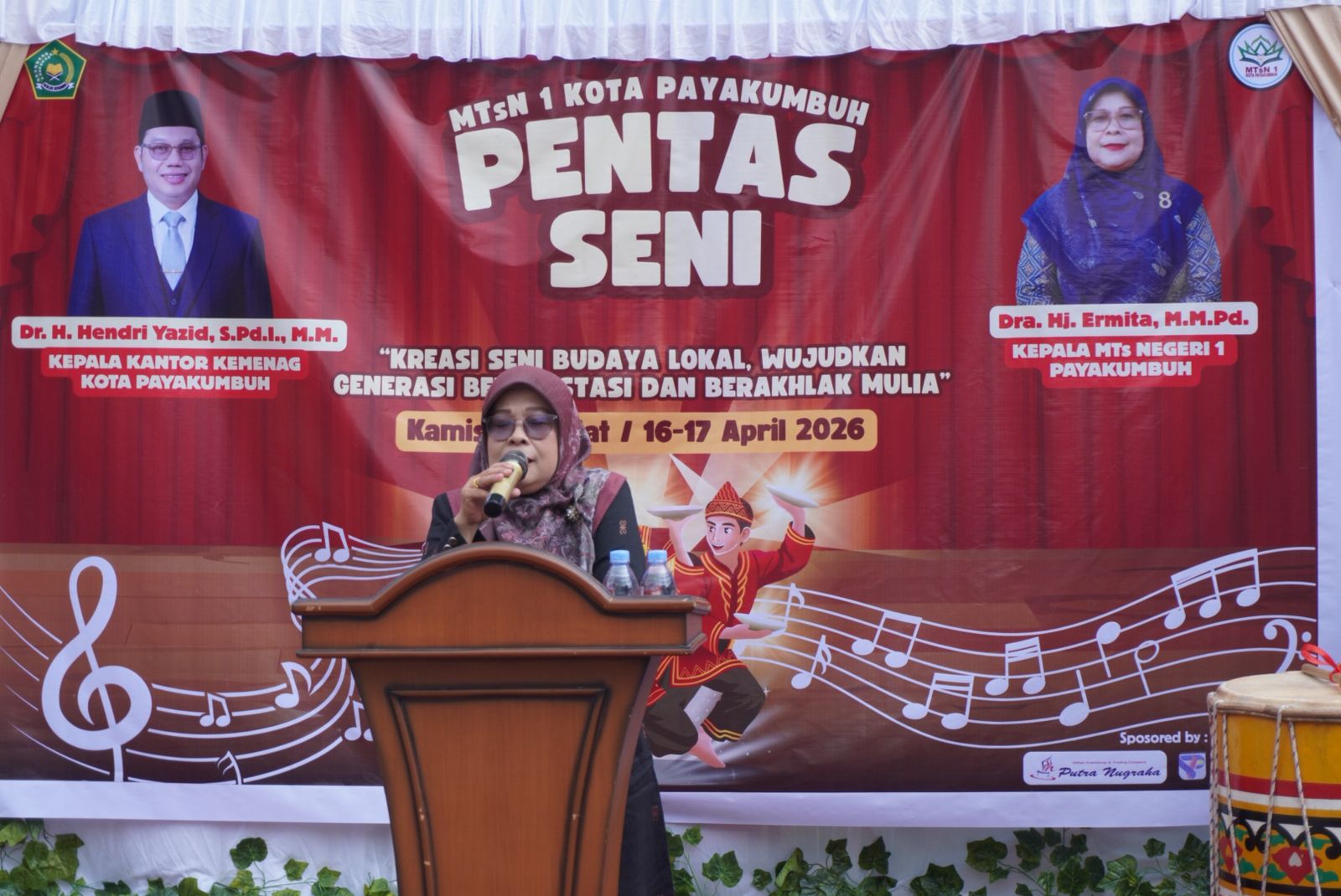 MTsN 1 Kota Payakumbuh menggelar Pentas Seni dan Seni Karya di halaman madrasah, Kamis (16/4/2026). Kegiatan ini menjadi wadah bagi siswa untuk menampilkan bakat sekaligus memperkuat karakter melalui seni budaya.