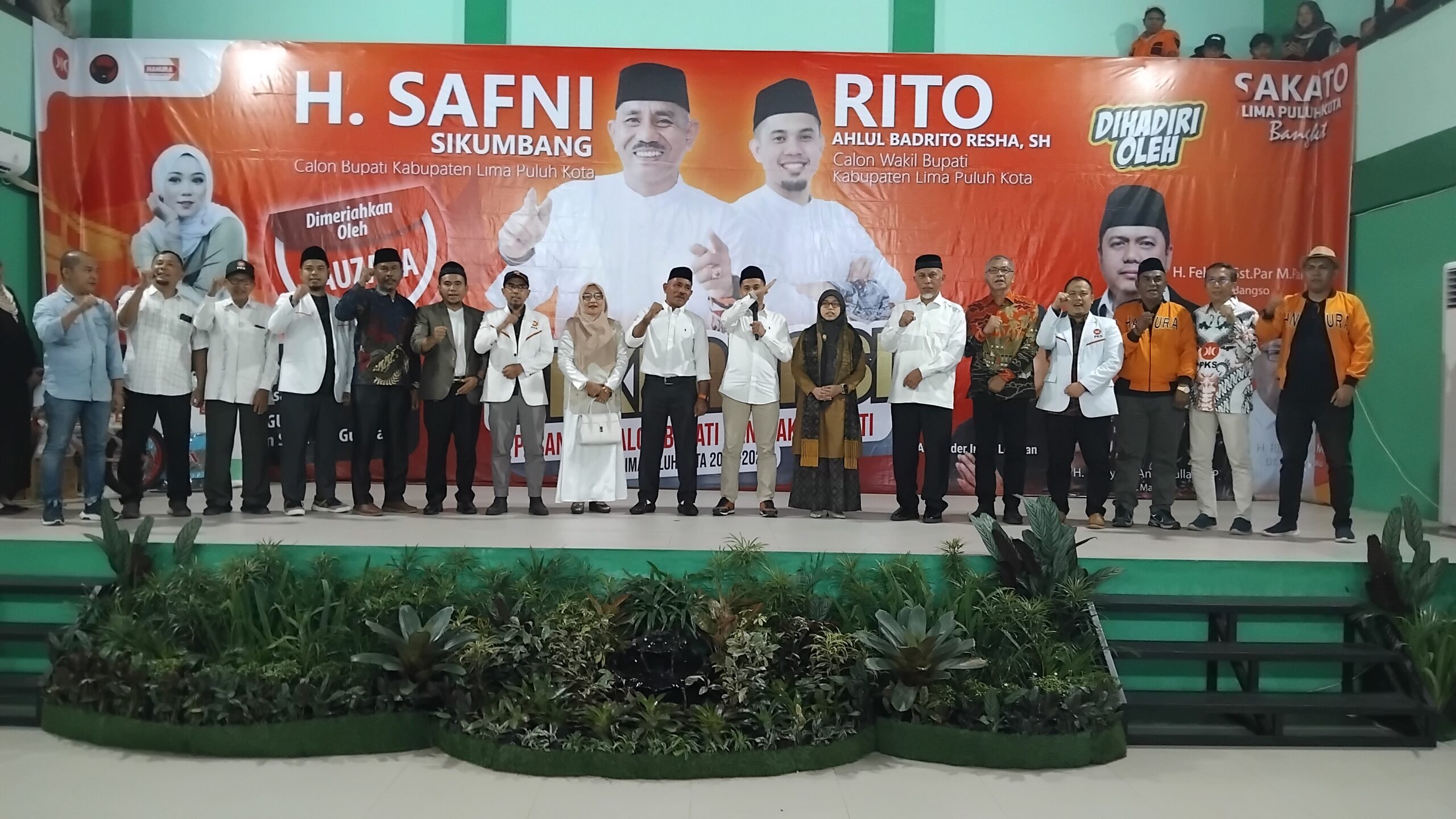 Pasangan calon bupati-wakil bupati Kabupaten Limapuluh Kota yang diusung koalisi PKS, PDI- P dan Partai Hanura dengan tagline ‘Limapuluh Kota Bangkit’ itu, adalah paslon pertama yang menggelar deklarasi setelah secara resmi mendapatkan surat dukungan dari koalisi tiga partai yakni PKS, PDI- P dan Partai Hanura.