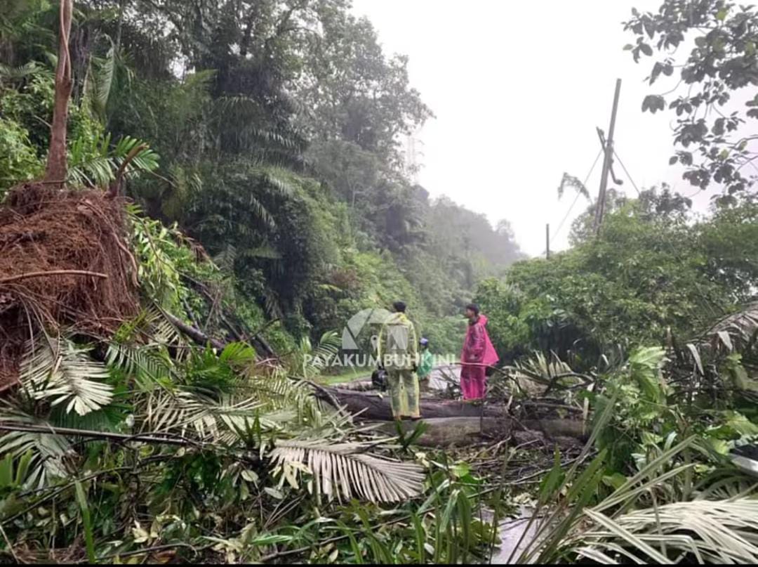 Dari video yang beredar di Media Sosial (Medsos) terlihat jalan tertutup tanah dan pepohonan yang tumbang, juga terlihat beberapa pengendara yang berhenti karena tidak bisa lewat.