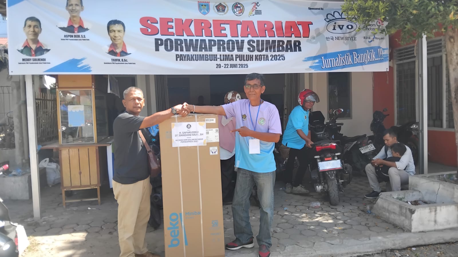 PAYAKUMBUH, Dekadepos.id- Untuk memeriahkan acara penutupan Pekan Olahraga Persatuan Wartawan Indonesia Provinsi Sumatera Barat (Porwaprov) yang akan digelar di aula kantor Balai Kota Payakumbuh, Munggu 22 Juni 2025, mantan Bupati Kabupaten Limapuluh Kota periode 2021-2024 Safaruddin Dt. Bandaro Rajo, SH menghadiahkan satu unit lemari pendingin (kulkas) untuk hadiah utama yang akan diperebutkan pada acara dendang KIM
