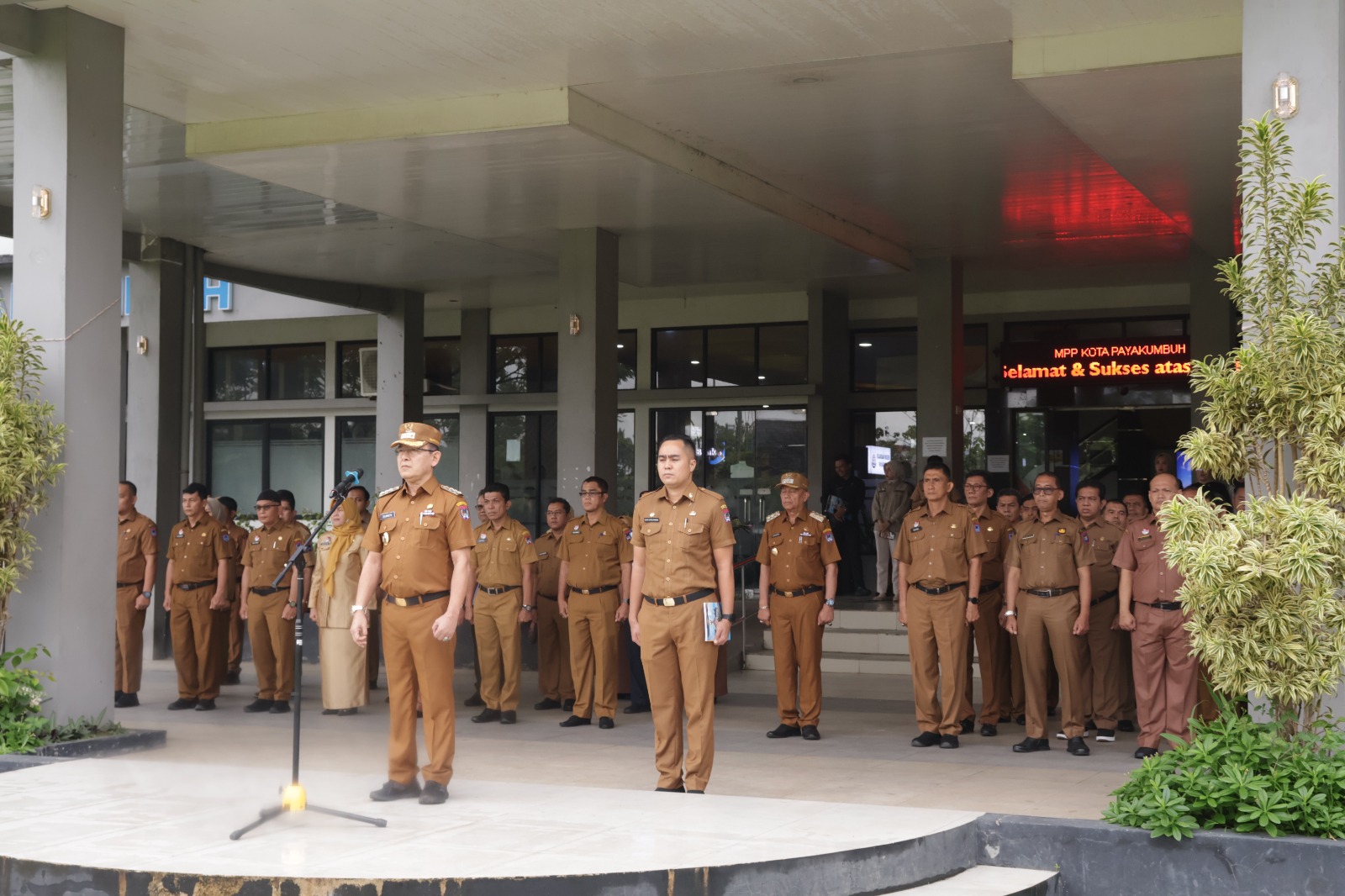 Wali Kota Payakumbuh, Zulmaeta, pimpin apel perdana di Balai Kota Payakumbuh, Senin pagi, 3 Maret 2025.