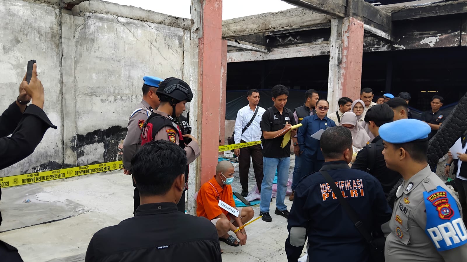 ” Saat kejadian, tersangka I (i) yang beralamat (sesuai KTP) di Padang Data Tanah Mati Kecamatan Payakumbuh Barat dan berdomisili di Lintau Buo Utara Kabupaten Tanah Datar naik ke ex. gedung Aprilia dengan memanjat dinding pada pukul 01.30 dinihari, setelah mulai berhalusinasi karena lem yang dihisap, ia berjalan mondar-mandir selama satu jam, ia kembali ke ex. Aprilia dan menghisap lem. Sekitar pukul 03.30 Wib karena merasa dingin, tersangka berinisiatif membuat api unggun didekat bangunan Aprilia dengan mengumpulkan plastik bekas lem,”tambahnya.