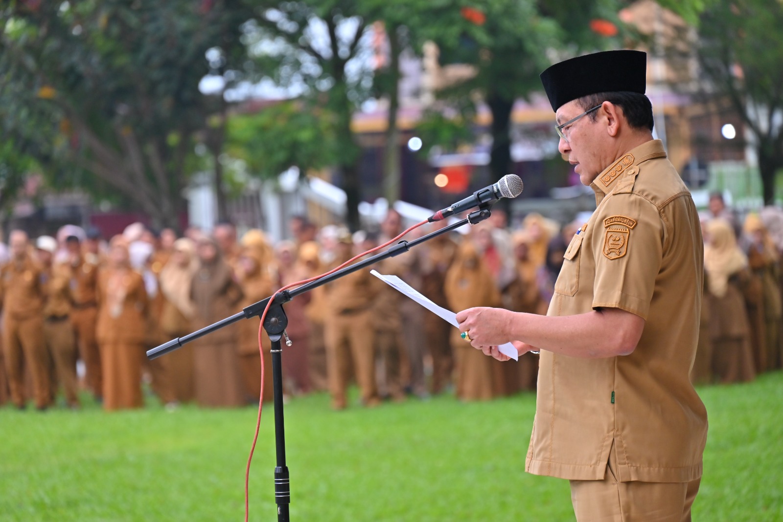 Hal tersebut disampaikan saat memimpin apel bersama yang diikuti Wakil Wali Kota Payakumbuh, Elzadaswarman, Sekretaris Daerah, Asisten, Staf Ahli, Kepala Perangkat Daerah, serta seluruh ASN Pemko Payakumbuh di Halaman Balai Kota, Selasa (31/03/2026).