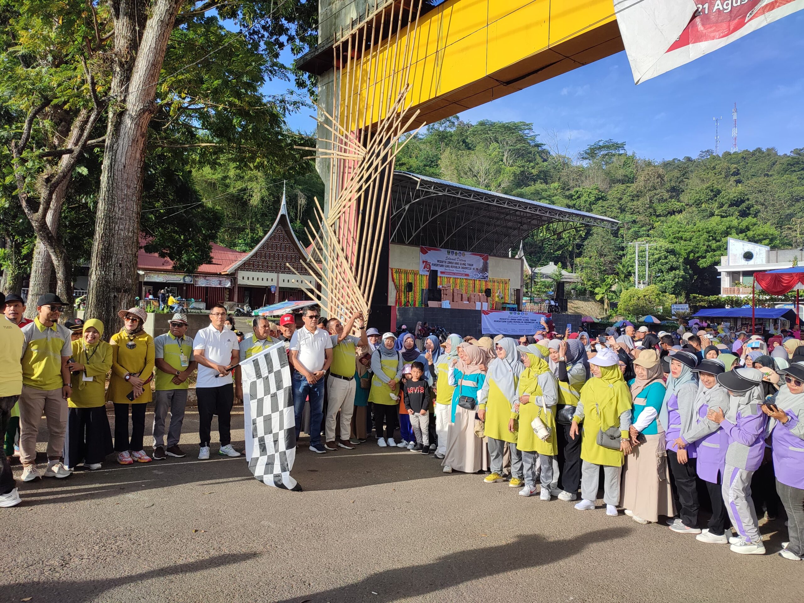 Antusiasme para peserta terlihat sejak pagi. Bendera start dikibarkan, mengiringi ayunan langkah para guru sembari bercengkerama dengan kolega sambil menikmati segarnya udara pagi di kota yang berjuluk City of Randang itu.