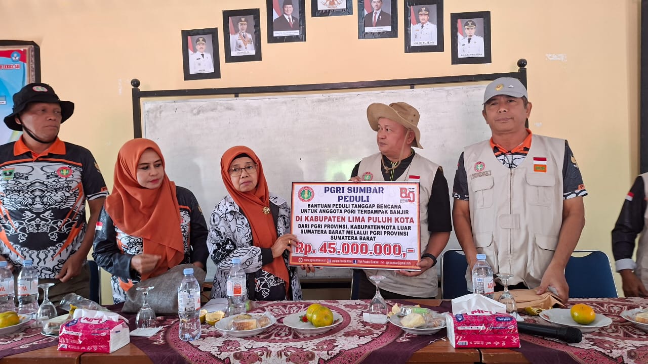 Menurut Ketua PGRI Kabupaten Limapuluh Kota, Indrawati Munir, sebagai bentuk kepedulian terhadap masyarakat termasuk kepada guru yang terdampak bencana alam tersebut, pengurus PGRI Provinsi Sumatera Barat bersama pengurus PGRI Kabupaten Limapuluh Kota mengantarkan bantuan untuk korban bencana alam tanah bergerak yang terjadi di Nagari Koto Tinggi, Kecamatan Gunung Omeh, Kabupaten Limapuluh Kota, Jum’at (26/12/2025).