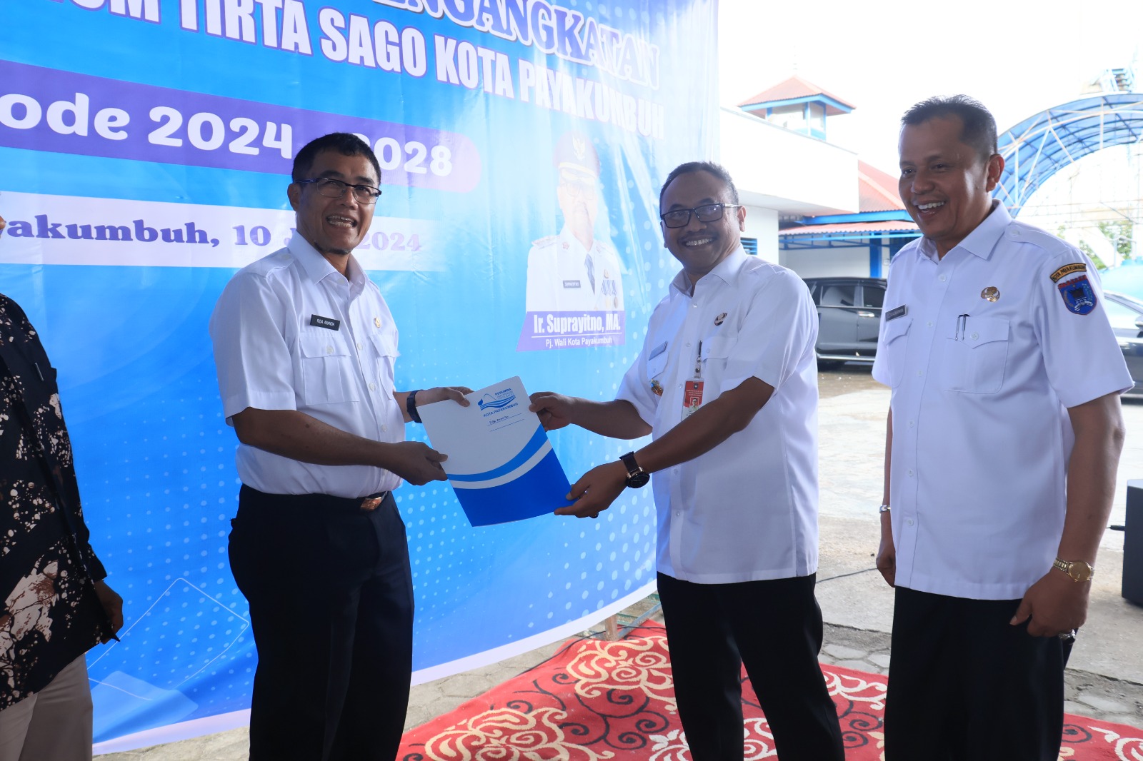 Pj. Wali Kota Payakumbuh yang juga Kuasa Pemilik Modal (KPM) Perumda Air Minum Tirta Sago (PAMTIGO) Kota Payakumbuh menyerahkan SK Dewan Pengawas (Dewas) PAM Tigo untuk periode 2024-2028.