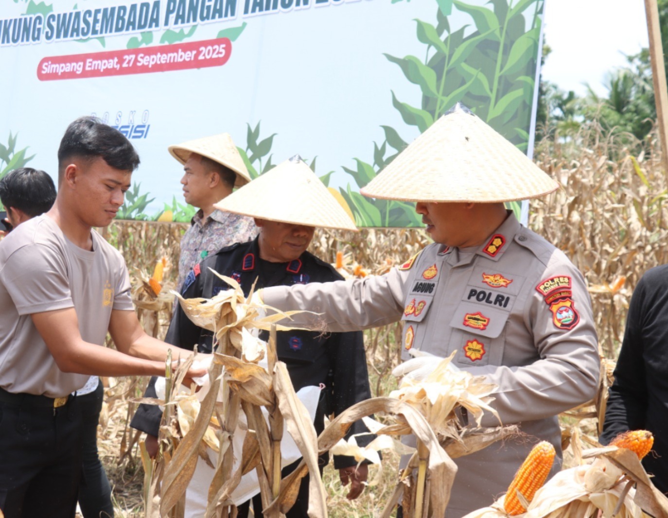 Mendukung Swasembada Pangan, Kepolisian Resor (Polres) Pasaman Barat, Sumatera Barat (Sumbar), menggelar panen raya jagung serentak kuartal III yang berlokasi di Jorong Bandarejo, Nagari Lingkuang Aua Bandarejo, Kecamatan Pasaman, Kab. Pasaman Barat, pada Sabtu 27 September 2025.