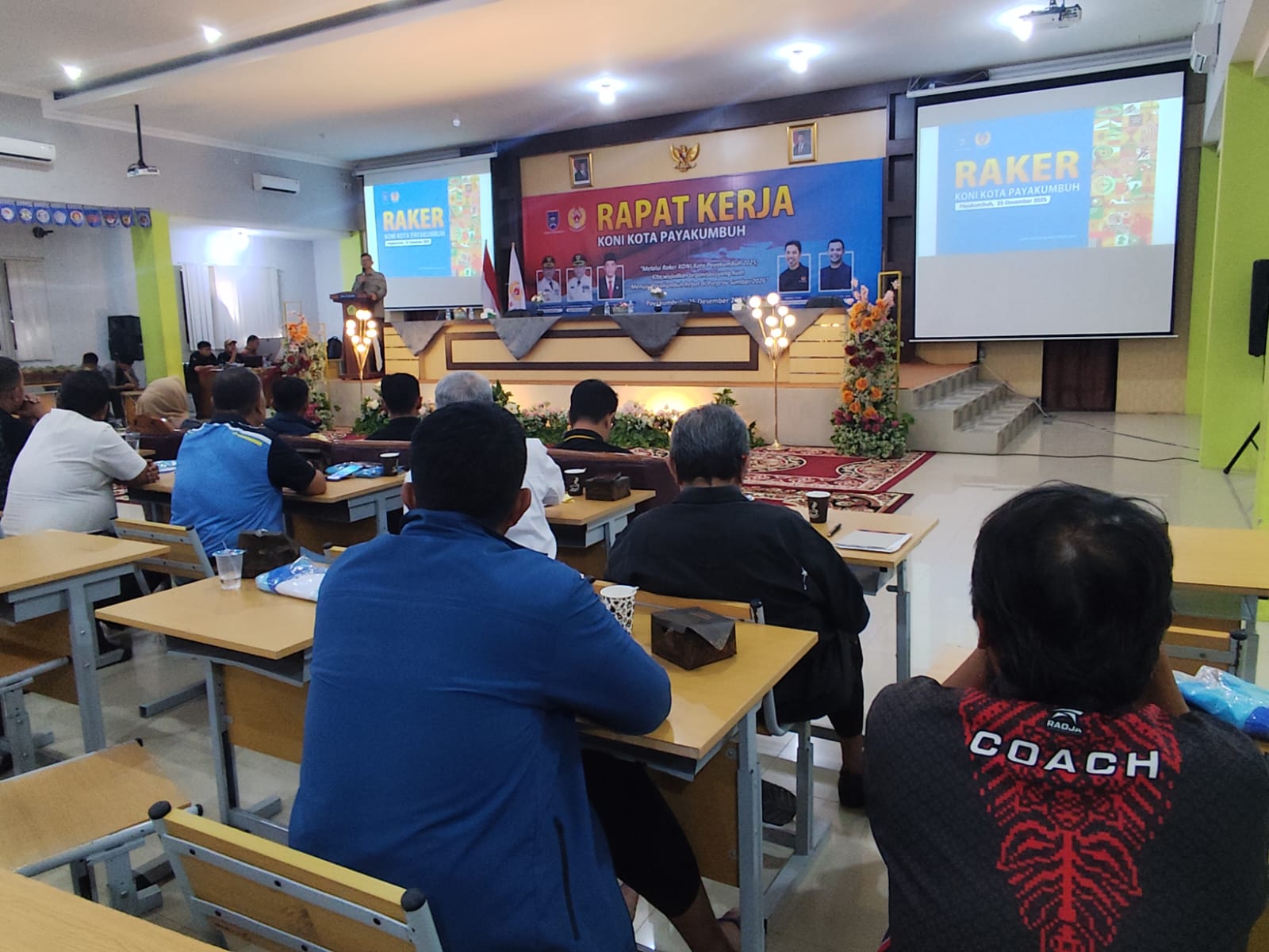 ” Iya, Alhamdulillah Pemerintah Provinsi Sumatera Barat, Pak Gubernur dan unsur Pimpinan telah menyetujui anggaran 12 M,  dari segi rupiahnya turun, tapi itu menyesuaikan dengan kondisi fiskal dan keuangan daerah. Pemerintah tetap mendukung penuh pelaksanaan Porprov,” ucap Ketua KONI Provinsi Sumatera Barat diwakili Wakil Ketua Umum III Koni Provinsi Sumbar, Aditya Warman, Kamis siang 25 Desember 2025 usai memberikan sambutan dalam Rapat Kerja (Raker) Komite Olahraga Nasional Indonesia (Koni) Kota Payakumbuh di aula SMA N 2 Payakumbuh.