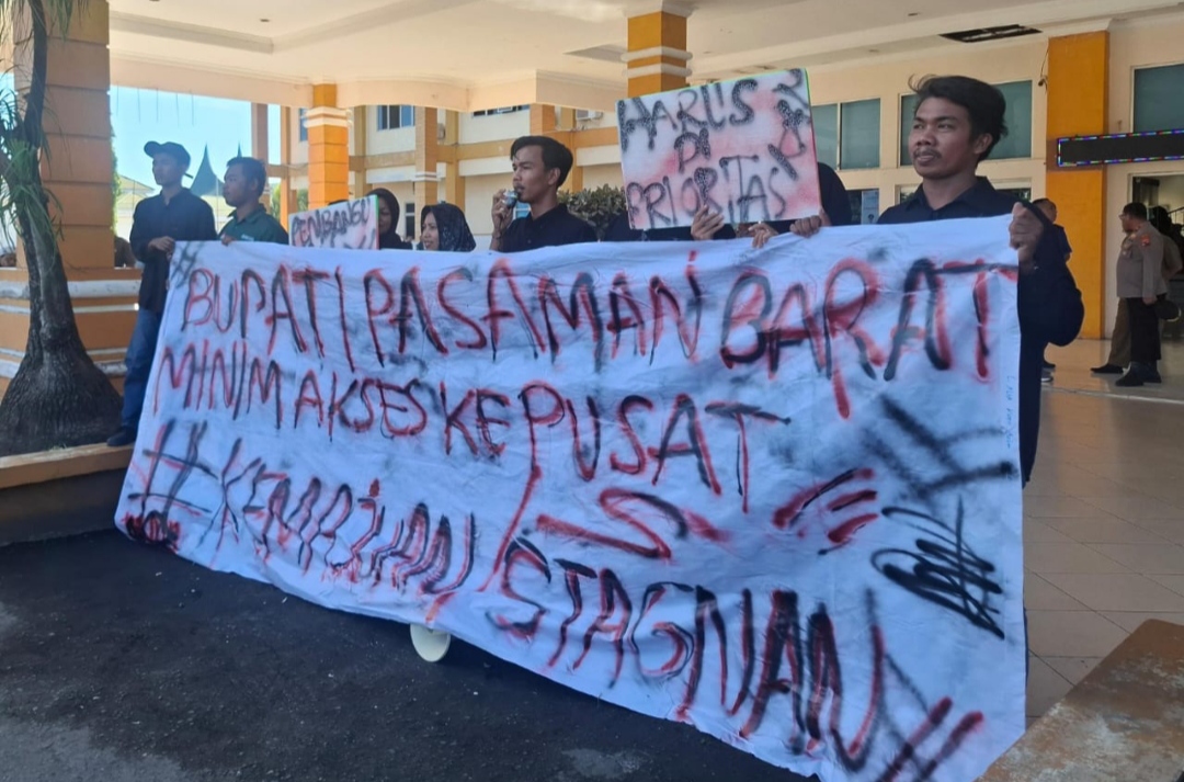 Aksi sempat direspons oleh Kabag Ops Polres Pasaman Barat Kompol Muzhendra dan Asisten I Setia Bakti, yang menawarkan ruang audiensi.