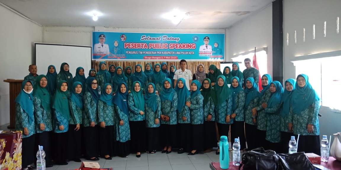 Ketua TP-PKK Kabupaten Limapuluh Kota, Ny. Asra Yanti Safni, dalam sambutannya menegaskan pentingnya keterampilan berbicara di depan publik sebagai modal dasar dalam mengemban tugas pelayanan dan pemberdayaan.