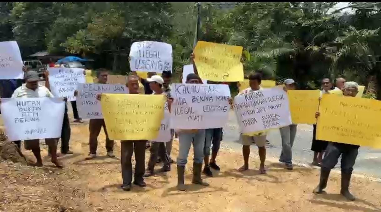 Dalam aksi yang berlangsung di jalan raya Sumbar–Riau, tepatnya di sekitar lokasi pembalakan liar tersebut, massa membawa puluhan kertas karton berisi kritik dan tuntutan agar aparat penegak hukum bertindak tegas terhadap pelaku illegal logging.