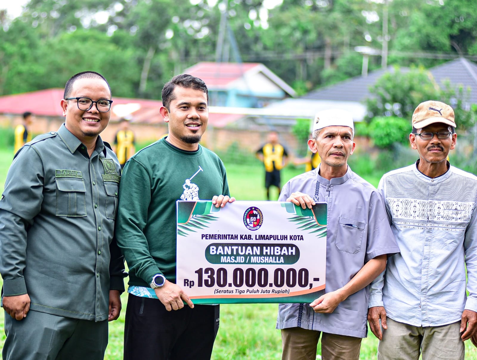 Hibah yang merupakan pokok pikiran anggota DPRD ini berjumlah Rp. 130 juta disalurkan melalui Kesra Kabupaten Limapuluh Kota dengan rincian masing-masing Masjid mendapat bantuan Rp20 juta dan Mushalla Rp10 juta.