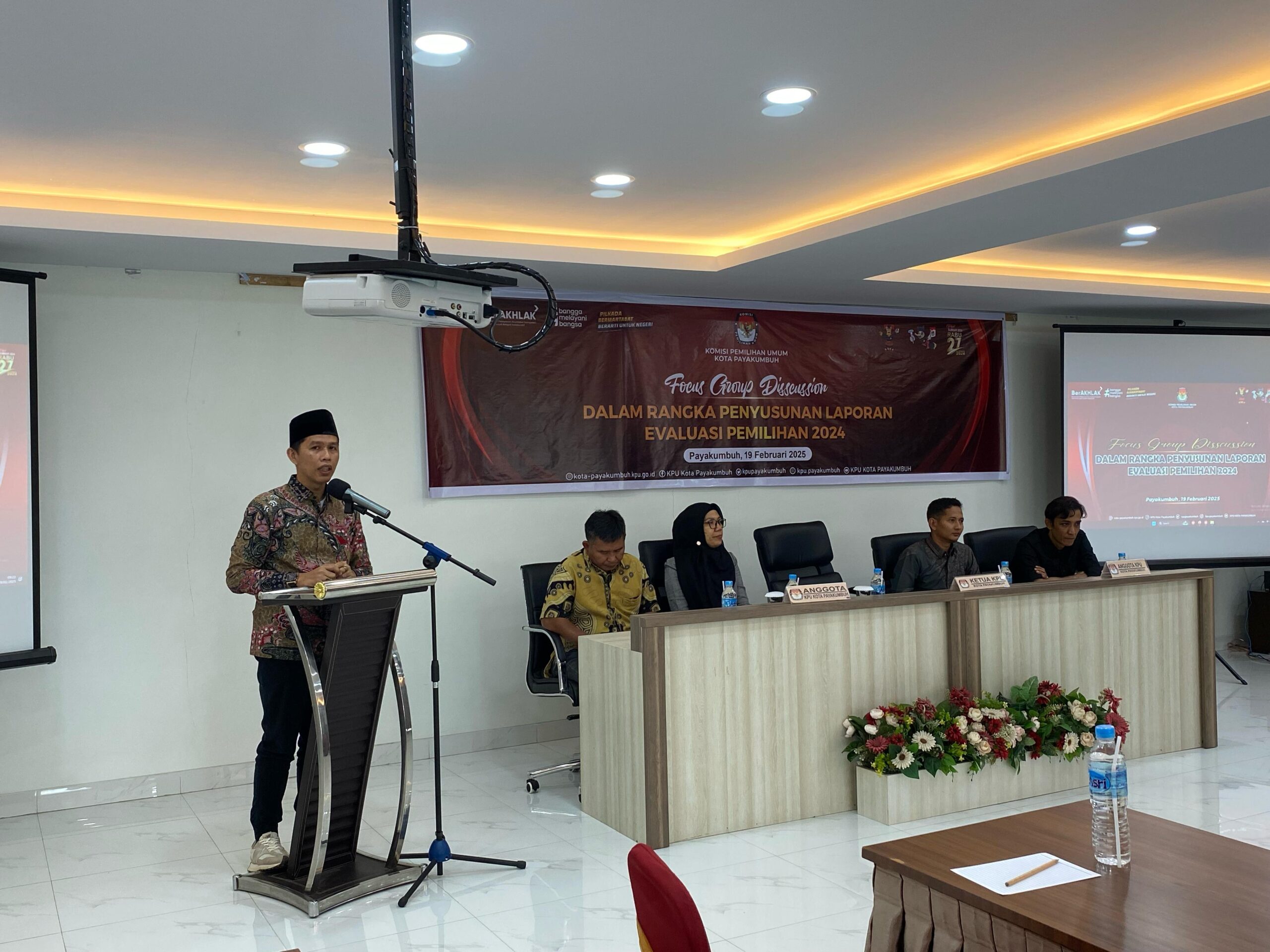 Hal tersebut diungkapkan Ketua KPU Kota Payakumbuh, Wizri Yasir usai membuka Focus Group Discussiion (FGD) Dalam Rangka Penyusunan Laporan Evaluasi Pemilihan 2024 yang digelar Rabu pagi 19 Februari 2025 di Aula Hotel di Kawasan Nan Kodok Kecamatan Payakumbuh Utara