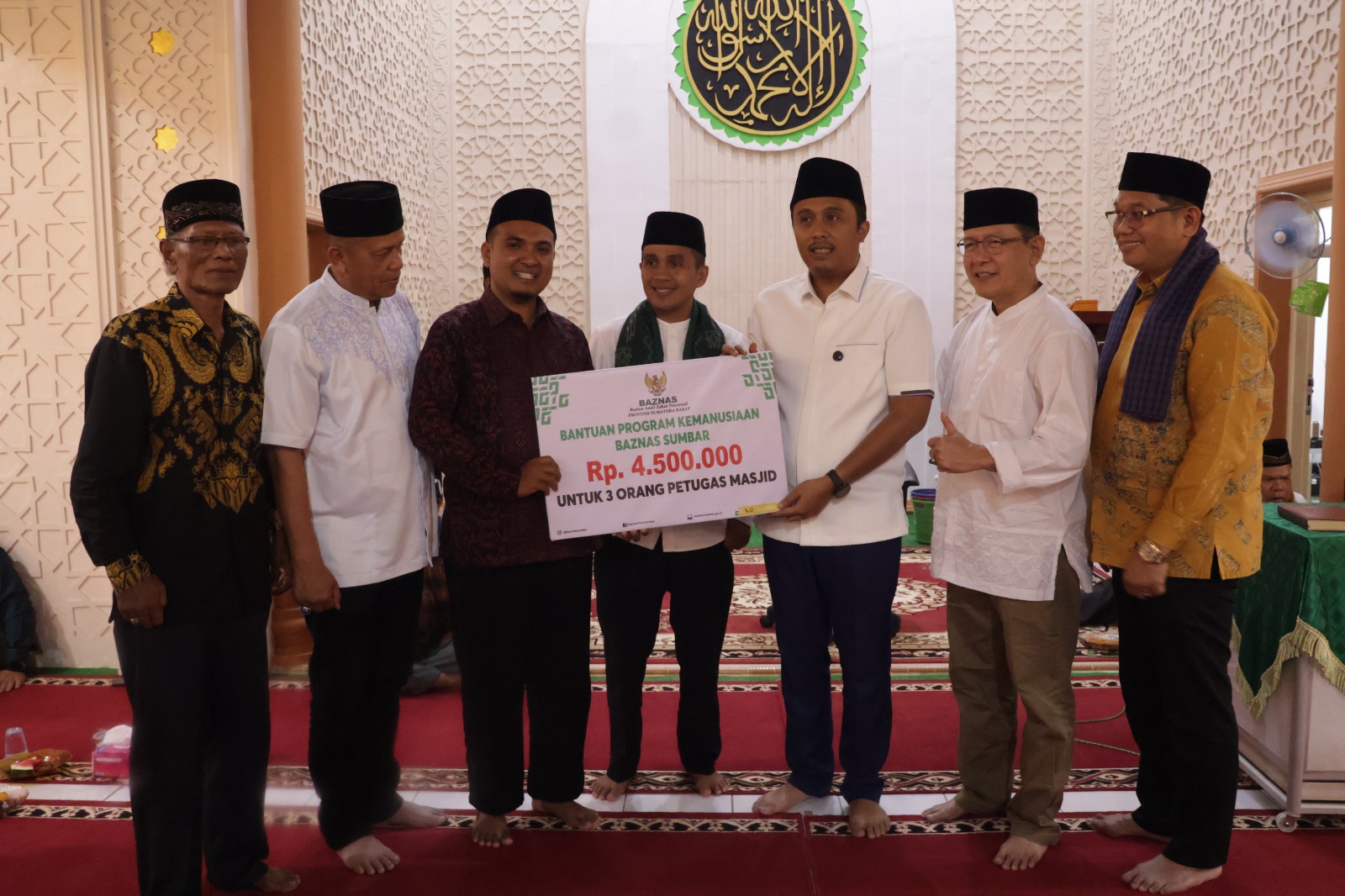 Dalam kesempatan tersebut, Pemerintah Provinsi Sumatera Barat menyerahkan bantuan sebesar Rp50 juta untuk pengembangan masjid, sementara Badan Amil Zakat Nasional (Baznas) Provinsi Sumatera Barat turut memberikan bantuan senilai Rp 4,5 juta. Bantuan ini diharapkan dapat mendukung berbagai kegiatan keagamaan dan pembangunan fasilitas masjid.