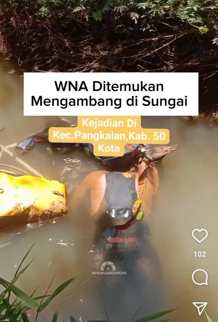 Seperti terlihat dari Postingan Instagram payakumbuhkini ditulis, WNA Ditemukan Mengambang Di Sungai. Dalam postingan itu, juga terlihat sepeda serta sejumlah barang-barang milik korban.