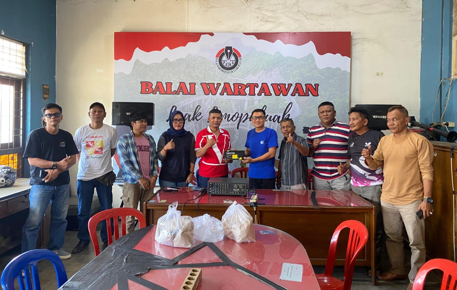 ” Bantuan satu set sound system ini selain bentuk kepedulian kepada sahabat wartawan, sekaligus bertujuan untuk memperkuat rasa kebersamaan dalam kerangka mempererat ikatan sosial dan menumbuhkan empati antar sesama, ” ungkap Zeki Oktariza kepada Koordinator Balai Wartawan Luak Limopuluah, Aking Romi Yunanda didampingi sejumlah wartawan saat menanti kedatangan tokoh muda Kota Payakumbuh itu.